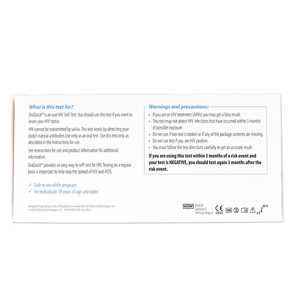The OraQuick HIV Self Test puts you in charge and allows you to discreetly determine your HIV status at a time and a place that is convenient for you. It's like a pregnancy test, but different....